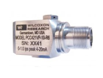 威爾康森4-20mA回路供電振動傳感器PCC421VR-10-M12-4型,側出口,105°C,4-20mA,每秒1.0英寸滿量程測量范圍,滿量程±5%容差,與RMS速度成正比。