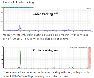 對于在變速下運行的機械,即使在測量過程中RPM變化很大,使用***清訂單跟蹤進行分析也能提供可靠的數據和清晰的測量結果。訂單跟蹤適用于非常寬的RPM范圍,從每分鐘幾轉到幾千轉。
