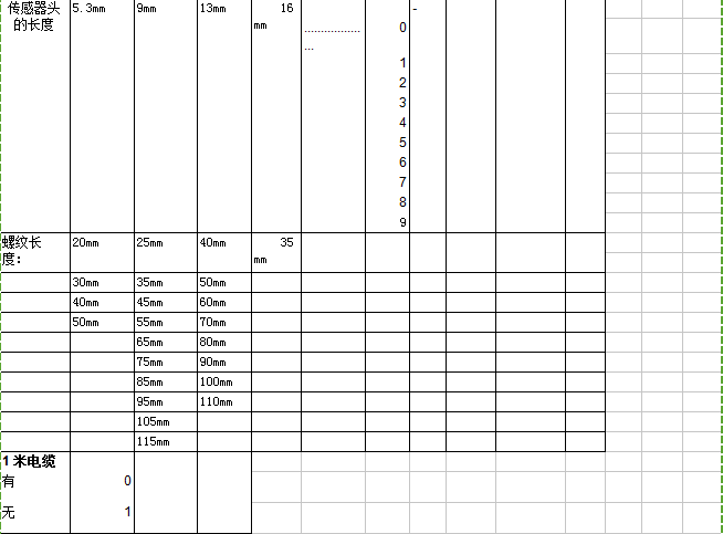 根據型號的不同,傳感器可有以下選擇:不同螺紋長度電纜的末端可選擇自鎖式防水接頭或裸線方式電纜可選擇鎧裝或非鎧裝1 m電纜處可選擇有接頭或無接頭。