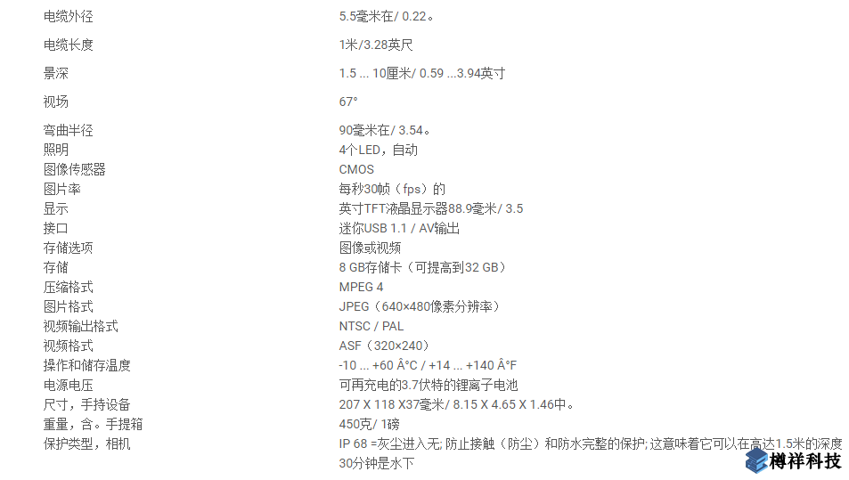 -特點5.5毫米/ 0.22"直徑防水攝像頭,圖像和視頻錄制功能,明亮的LED燈,和一個1米/3.28英尺長半柔性/半剛性電纜