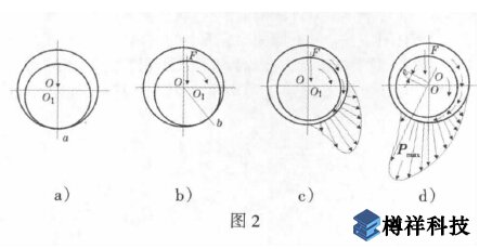 圖2 中a 是靜止狀態(tài)時軸和軸承的情況。b 是當軸從靜止狀態(tài)開始旋轉(zhuǎn)時,軸按圖中方向向b 點爬行,此時系統(tǒng)還不具備形成承載動力油膜的條件。摩擦表面主要依靠邊界膜保護,故摩擦因數(shù)較***。c 是隨著轉(zhuǎn)速的提***,卷入的潤滑油增多,從而形成一定的油膜壓力迫使軸向左方移動,軸的表面逐漸與軸承表面隔離,摩擦因數(shù)急劇下降是為混合潤滑狀態(tài)。d 是軸的轉(zhuǎn)速進一步提***后,動力油膜充分形成,表面完全隔開,摩擦力只是油膜的分子之間的阻力。摩擦因數(shù)降至***低,這便是流體動力潤滑。此后,轉(zhuǎn)速再增***時,剪切速度增大,摩擦因數(shù)又會緩慢上升。