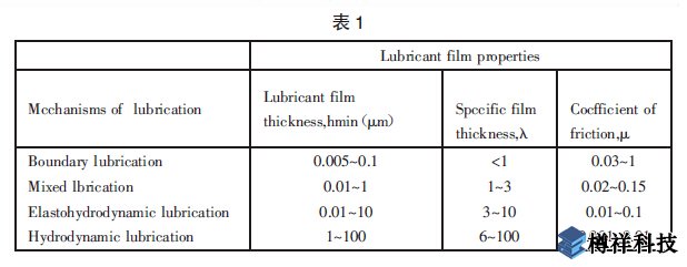 如果將圖4 數(shù)值化則可成表1,見圖5。表1 中給出了各種潤滑狀態(tài)下典型的油膜厚度hmin,比膜厚λ 和摩擦因數(shù)μ。1.邊界潤滑從使用壽命、可靠性、節(jié)約能源,降低材料消化等方面來看。