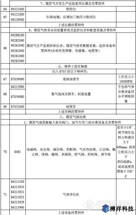 據儀器信息網編輯統計,《勘探開發煤層氣免稅進口物資清單》中,物資貨品分為開發作業類、鉆井類、煤層氣儲運類等八大類,包含掃描電鏡、應力測試儀、巖芯分析儀、含水率測井儀、成像測井儀等儀器設備及其他裝置共計89種。
