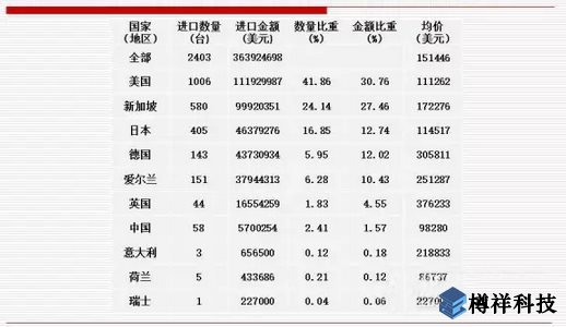 其中:美***是進口數量***多、進口金額******的******(進口1006臺、11193.00萬美元,均價111262美元),新加坡的進口數量和進口金額均列第二(進口580臺、9992.04萬美元,均價172276美元);上海市的進口數量***多(進口502臺、同比上升30.73%,均價101116美元),北京市的進口金額******(進口7019.12萬美元、同比上升54.90%,均價191257美元)。