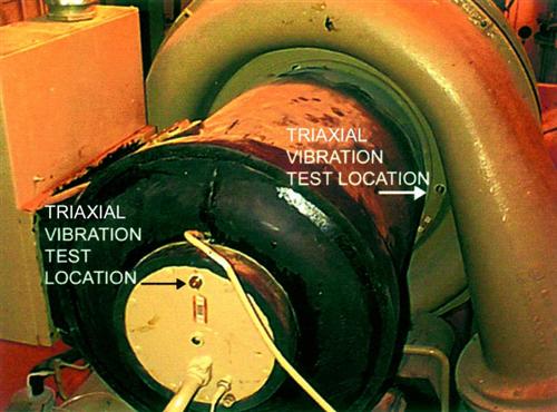 圖1.冷卻器顯示電機軸承座上的振動測試位置。