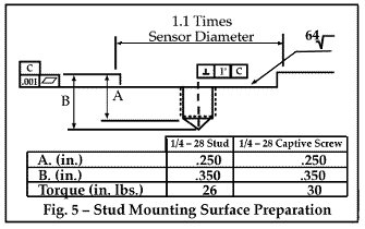 有四種主要方法用于將傳感器連接到預(yù)測(cè)性維護(hù)中的監(jiān)控位置。它們采用螺柱安裝,粘合劑安裝,磁力安裝以及探針尖端或刺針的使用。每種方法都會(huì)影響加速度計(jì)的***頻響應(yīng)。螺柱安裝提供***寬的頻率響應(yīng)和***安全可靠的附件。圖5顯示了螺柱安裝傳感器的理想表面準(zhǔn)備。